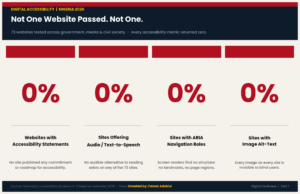 The findings reveal a pattern of systematic inaccessibility that extends from the highest levels of federal government to organisations ostensibly advocating for disability rights.
